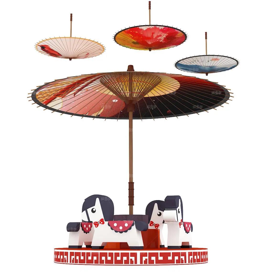 3.油紙傘轉(zhuǎn)馬煙雨蒙蒙,小朋友們來到了江南,這里青石綠苔,雨點(diǎn)打在紅瓦上,濺起漣漪。我們的小轉(zhuǎn)馬,做成了油紙傘的造型,在下面就仿佛來到了別樣的江南,轉(zhuǎn)上一圈,別有一番滋味?!狤ND—何處是神州?“讓我們走進(jìn)國(guó)風(fēng)樂園,體驗(yàn)真正的中華文明吧!”